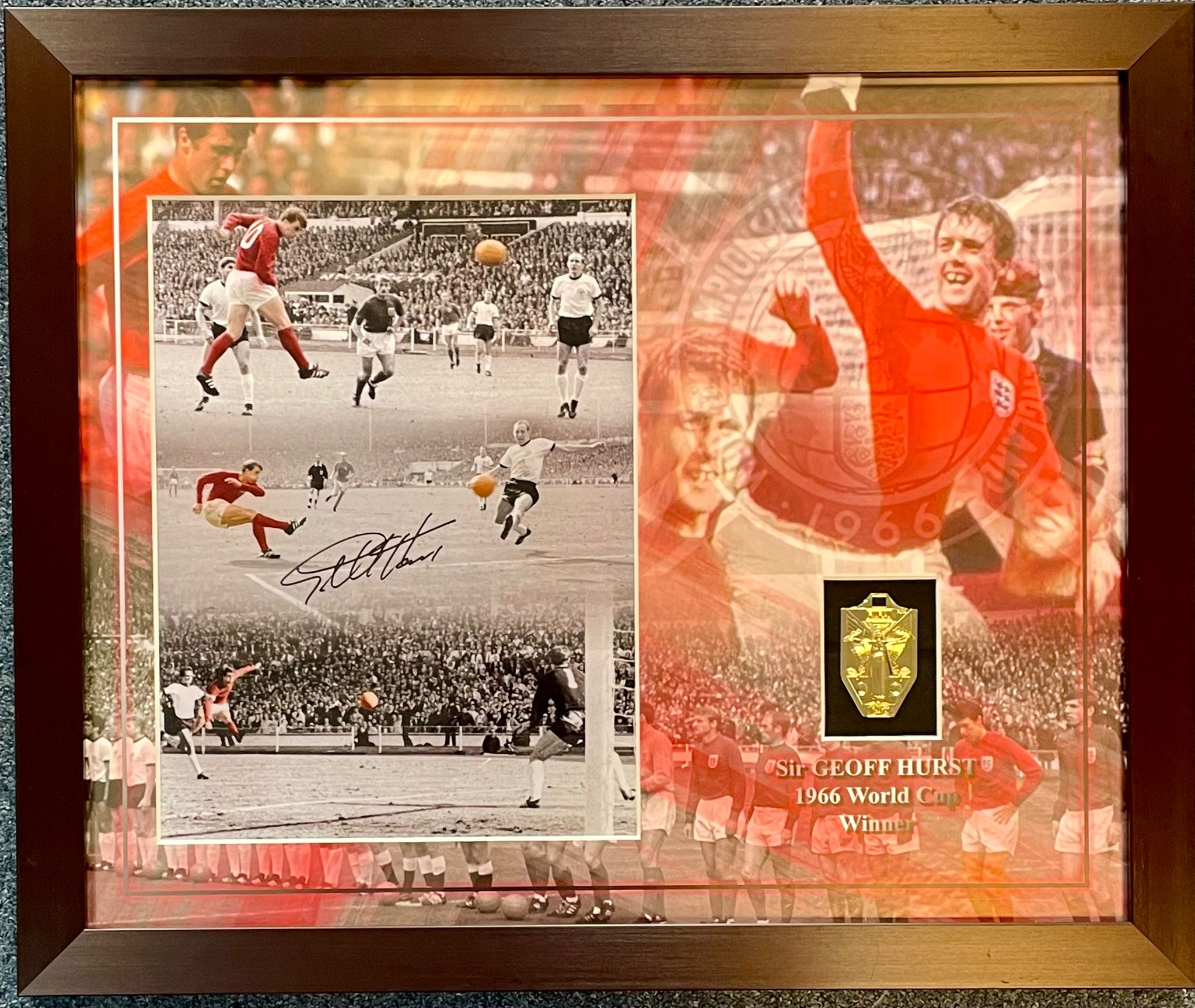 Exclusive world cup display signed by Sir Geoff Hurst including a unique replica World Cup Winner.
